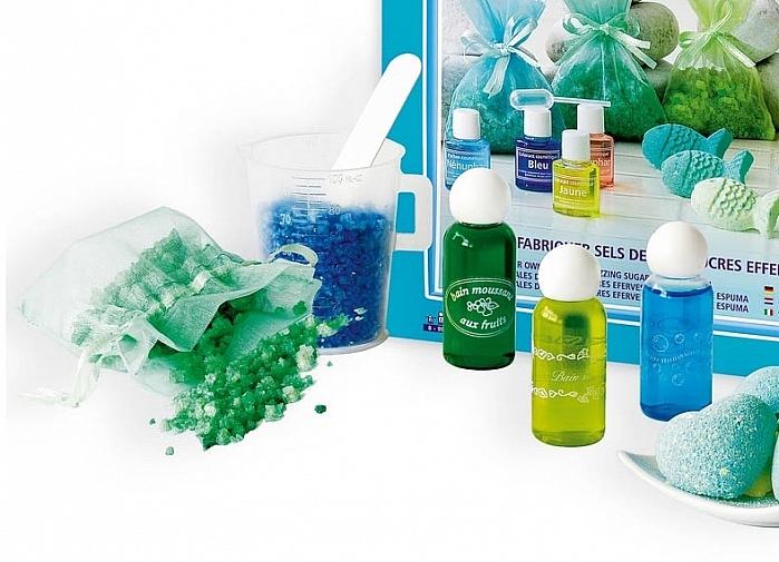 * Veti putea fabrica zaharul de baie efervescent, saruri relaxante si delicios parfumate, veti putea realiza spume de baie colorate si geluri de dus.