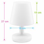 Construită din materiale durabile și rezistentă la apă, lampa poate fi utilizată atât în interior, cât și în exterior. Bateria reîncărcabilă internă permite ore întregi de utilizare portabilă, fără a necesita conectare constantă la rețea.