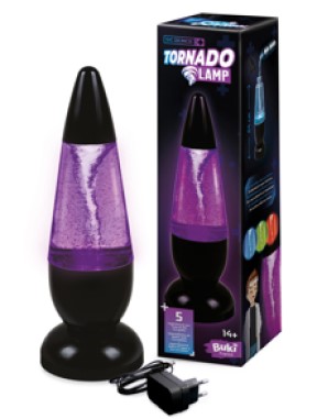 Lampa are un bec LED, care isi schimba culoarea si reproduce o tornada submarina.