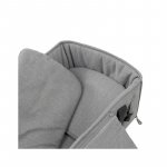 - Are bretele de prindere pentru instalarea pe carucior si un reglaj de unghi pentru a se adapta la scaun.