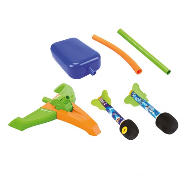 Rachetele sunt facute din spuma moale. Una dintre cele doua rachete scoate un tipat cand o lansati!