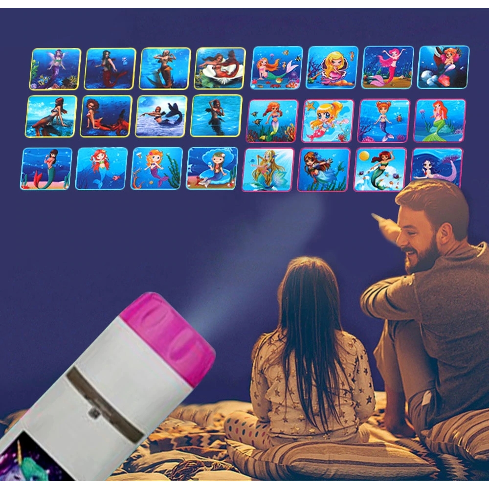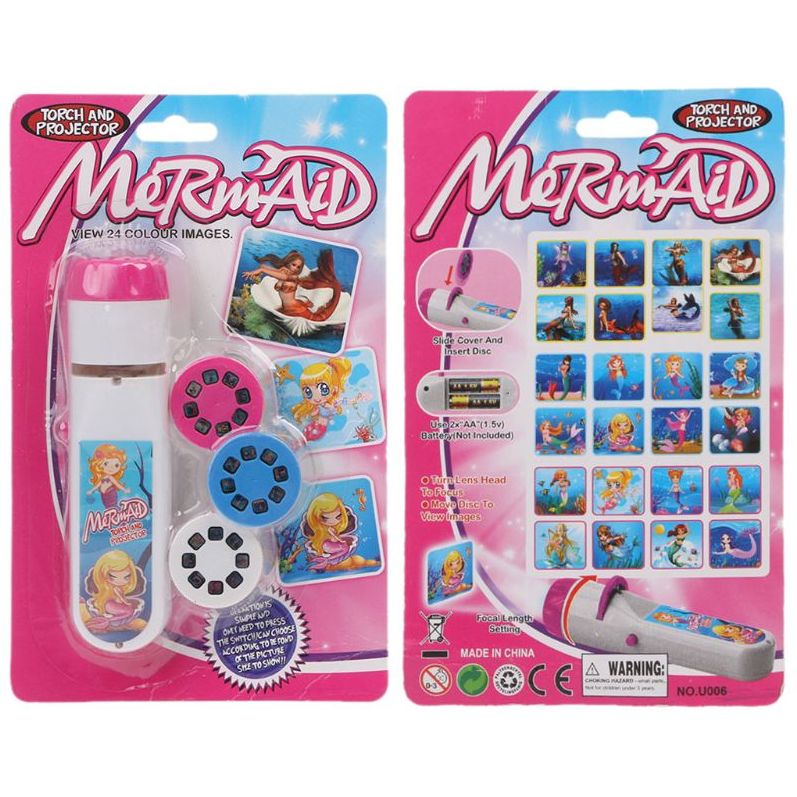 Setul este format dintr-o lanterna cu 3 diapozitive care contin imagini cu sirene. Proiecteaza imagini cu latimea de pana la 1 m. Rotiti capatul lentilelor pentru a focaliza imaginea.