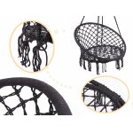 Leagan suspendat Ikonka, pentru interior/exterior, cu franghii din bumbac si cadru metalic, diametru 80 cm, sarcina maxima admisa 150 kg, Black
