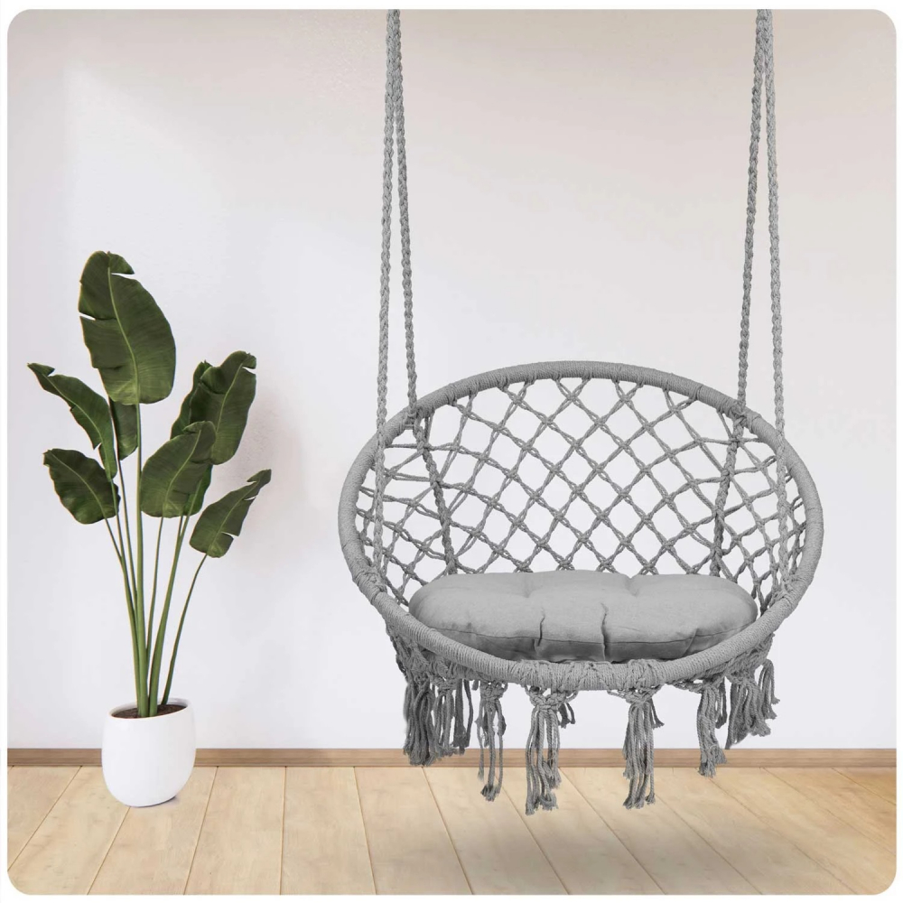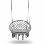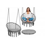 Leagan suspendat pentru copii/adulti Sofotel Boho Gri utilizare interior/exterior 80x63x57 cm, sarcina maxima 150 kg, spatar inalt, cadru metalic, perna inclusa