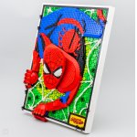 Aceasta piesa de arta dimensionala unica este creata din straturi de caramizi LEGO unde Spider-Man iese din rama, iar capul si degetele pot fi manevrate in diferite pozitii.