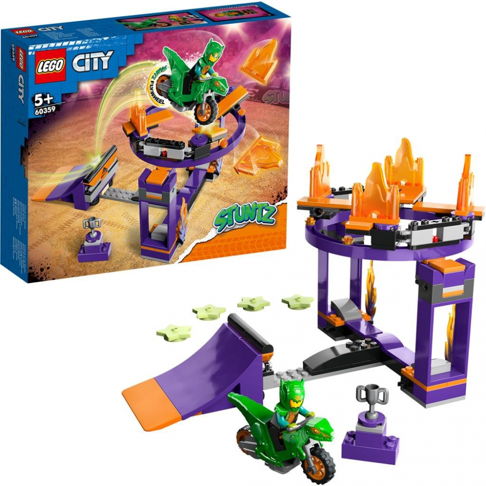 Ore intregi de competitii si demonstrantii de cascadorii te asteapta cu setul LEGO City Cascadorii pe rampa (60359).