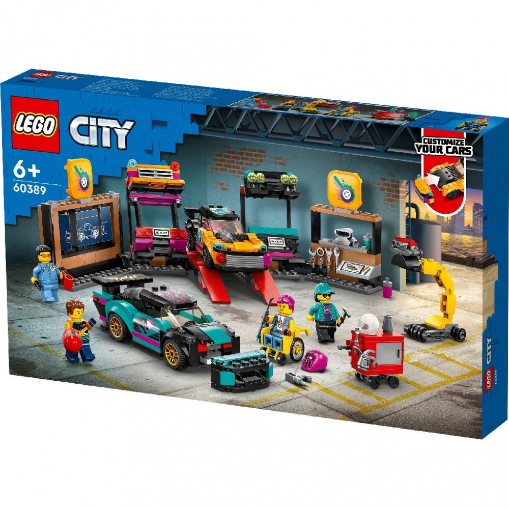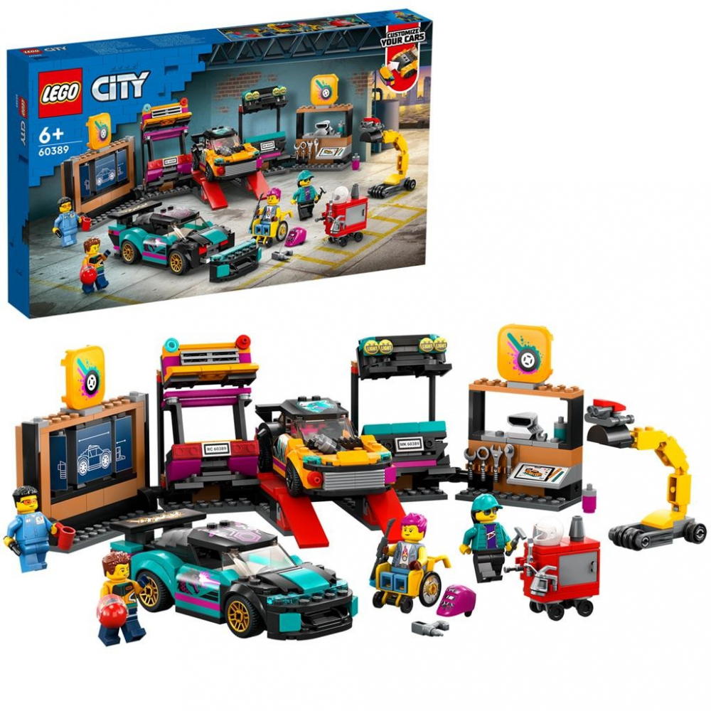 Sa personalizezi masini devine o joaca de copii cu setul LEGO® City Service pentru personalizarea masinilor (60389), care contine un atelier cu o multime de functii grozave si 2 masini de jucarie personalizabile.