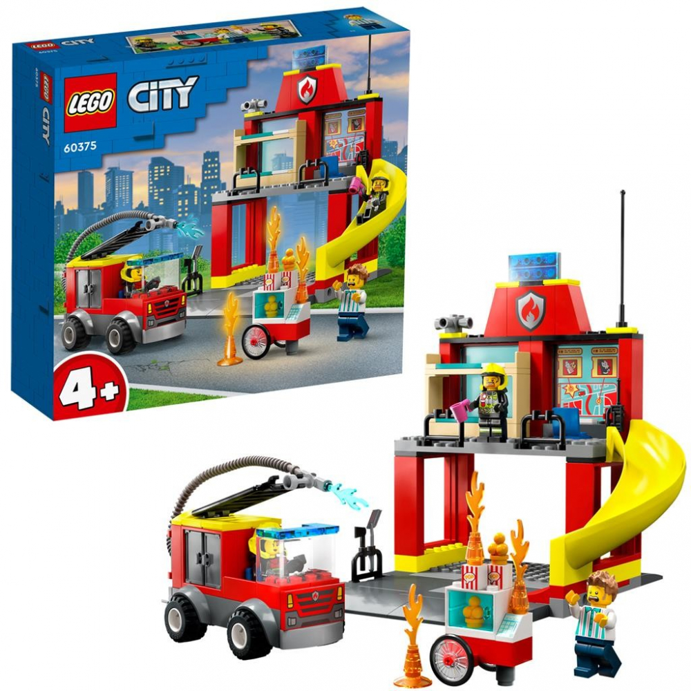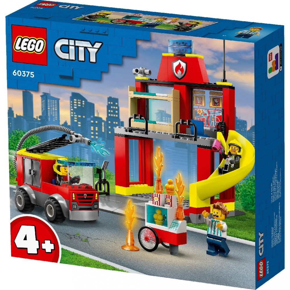 Aprinde imaginatia copiilor cu setul de joc LEGO® City Remiza si masina de pompieri (60375), care contine o statie de pompieri cu spatii de dormit, garaj si un tobogan amuzant pentru plecari urgente.