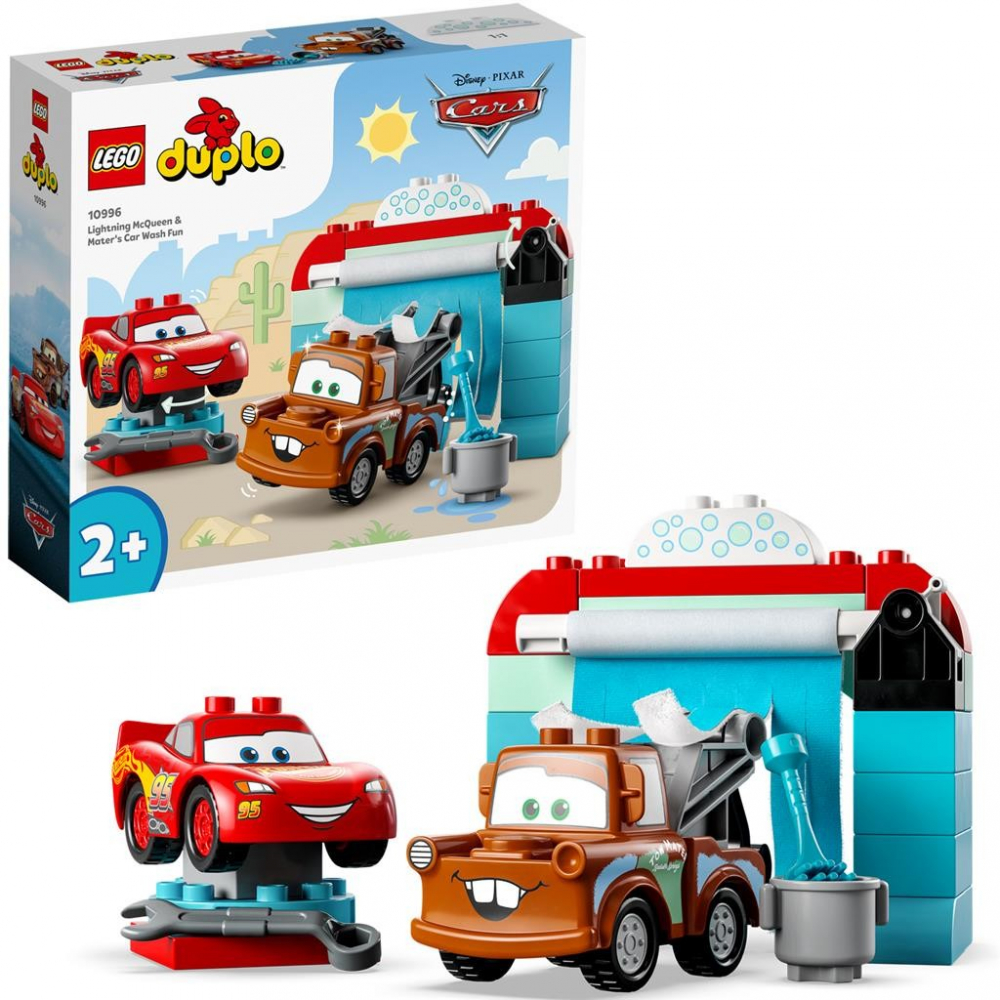 Daruieste fanilor in varsta de doi ani si mai mari ca rasfat setul LEGO® DUPLO® | Disney si Masinile Pixar - Distractie la spalatorie cu Lightning McQueen si Mater (10996).