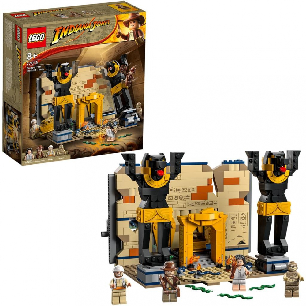 Setul de construit contine 4 minifigurine Indiana Jones cu faimoasa sa palarie si celebrul bici, Marion Ravenwood, Sallah de si o mumie, plus Chivotul Legamantului, care ii ajuta pe copii sa recreeze o faimoasa scena de evadare din emblematicul film Cautatorii arcei pierdute.