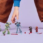 Setul include minifigurinele Iron Man si War Machine si 2 drone Hammer construibile.