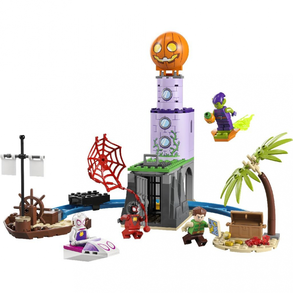Setul include 4 minifigurine - Miles Morales, Ghosty, Sandman si Green Goblin - plus o epava de pirati construibila, o sina de cale ferata pentru a transporta comoara furata, o pestera cu rol dublu de inchisoare, sediul farului lui Green Goblin si numeroase accesorii.
