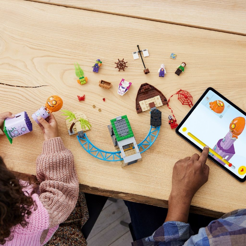 Actiune autentica - Include minifigurinele Miles Morales, Ghosty, Sandman si Green Goblin, plus o epava de pirati construibila, o sina de cale ferata, o inchisoare in pestera si farul lui Green Goblin.