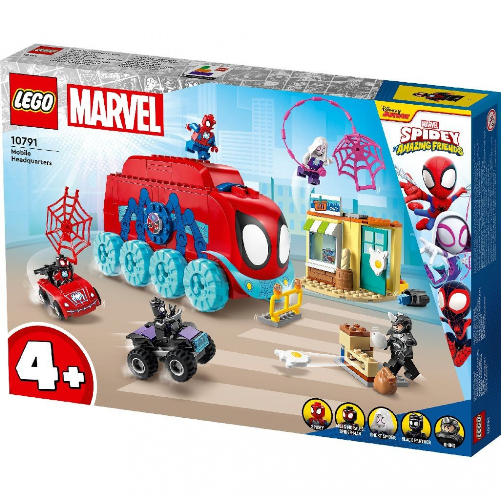 Personaje iconice - Include minifigurinele Spidey, Miles Morales, Ghost-Spider, Black Panther si Rhino, plus un sediu mobil construibil pentru Spidey si echipa lui.