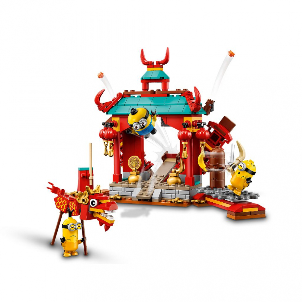 Copiii pot ajuta Minionii sa isi perfectioneze abilitatile de kung fu folosind armele si manechinul rotativ de antrenament, dupa care pot lansa artificiile de pe acoperisul templului in timp ce Minionii poarta dragonul.