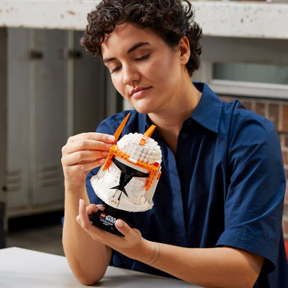 Adu un omagiu unui soldat devotat cu acest model de constructie si etalare LEGO® Star Wars Clona Comandantul Cody Casca (75350) pentru adulti.