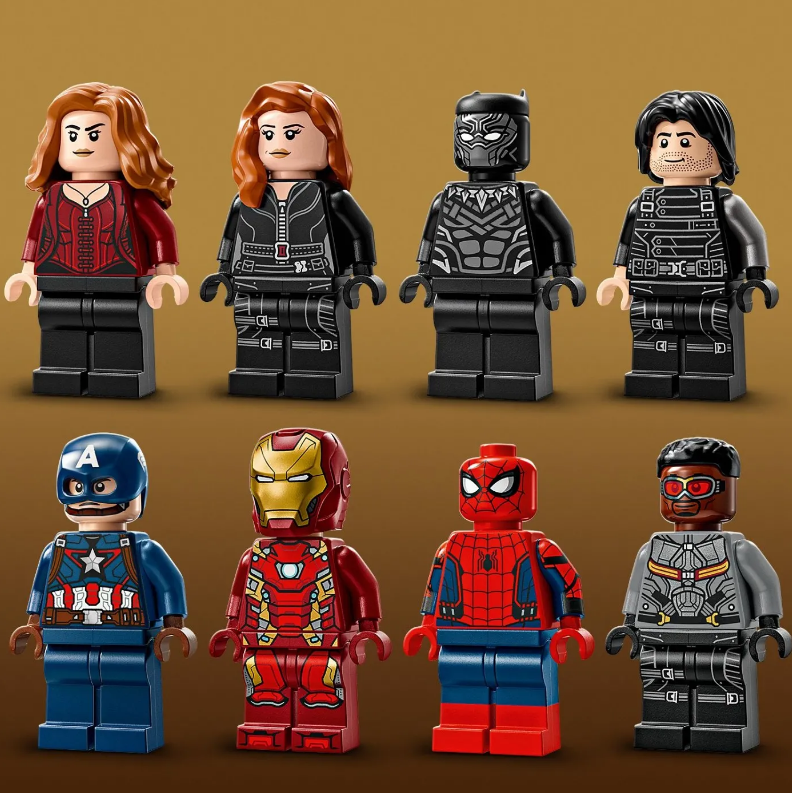 Cu 9 figurine LEGO Marvel, o aeronava Quinjet si o multime de accesorii, acest set LEGO construibil le ofera copiilor ocazia sa recreeze momentele preferate din film, sa exploreze nenumarate aventuri fanteziste si sa creeze propriile povesti.