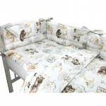 Lenjerie patut 3 piese Qmini cu protectie laterala din bumbac 140x70 cm Teddy Bear and Friends Beige
