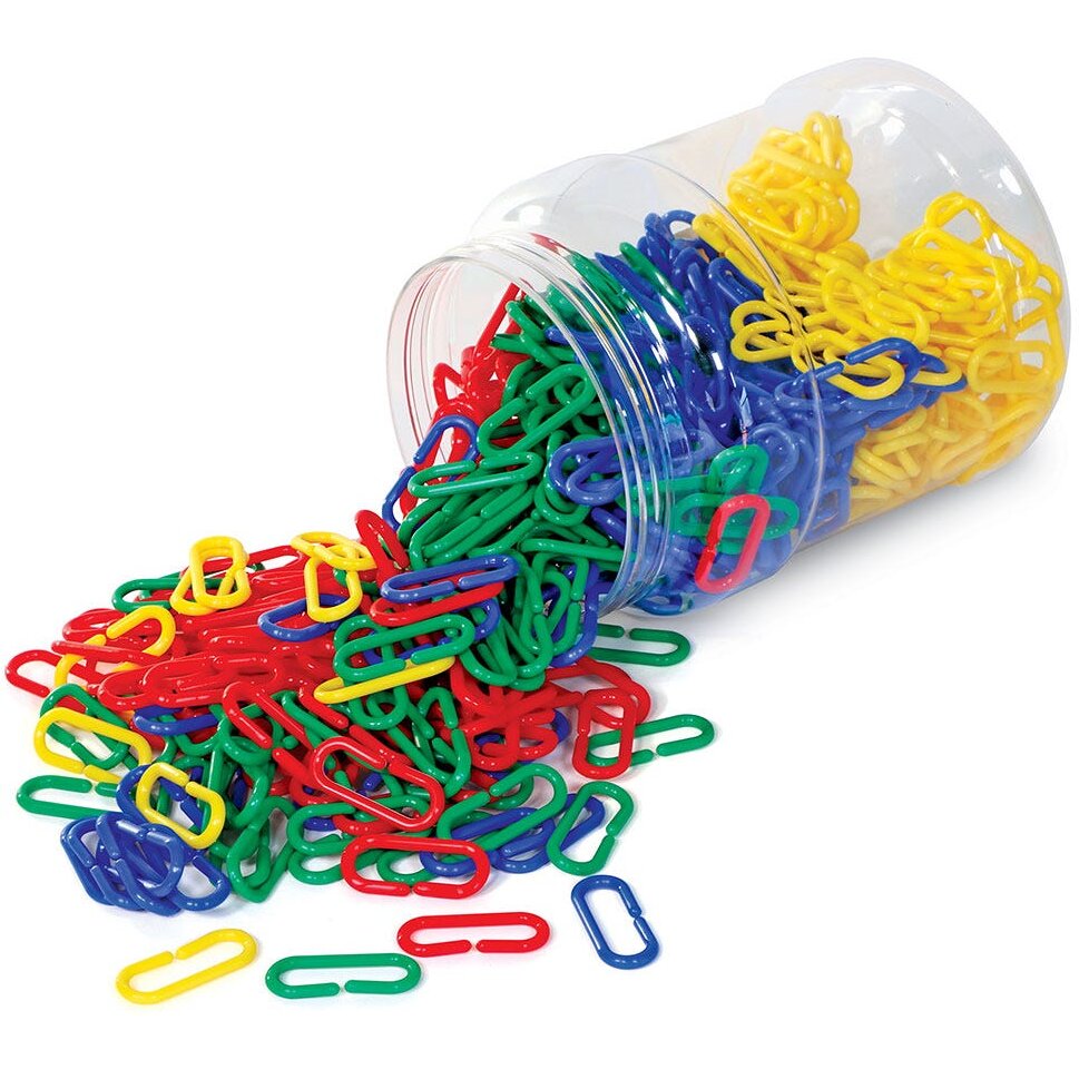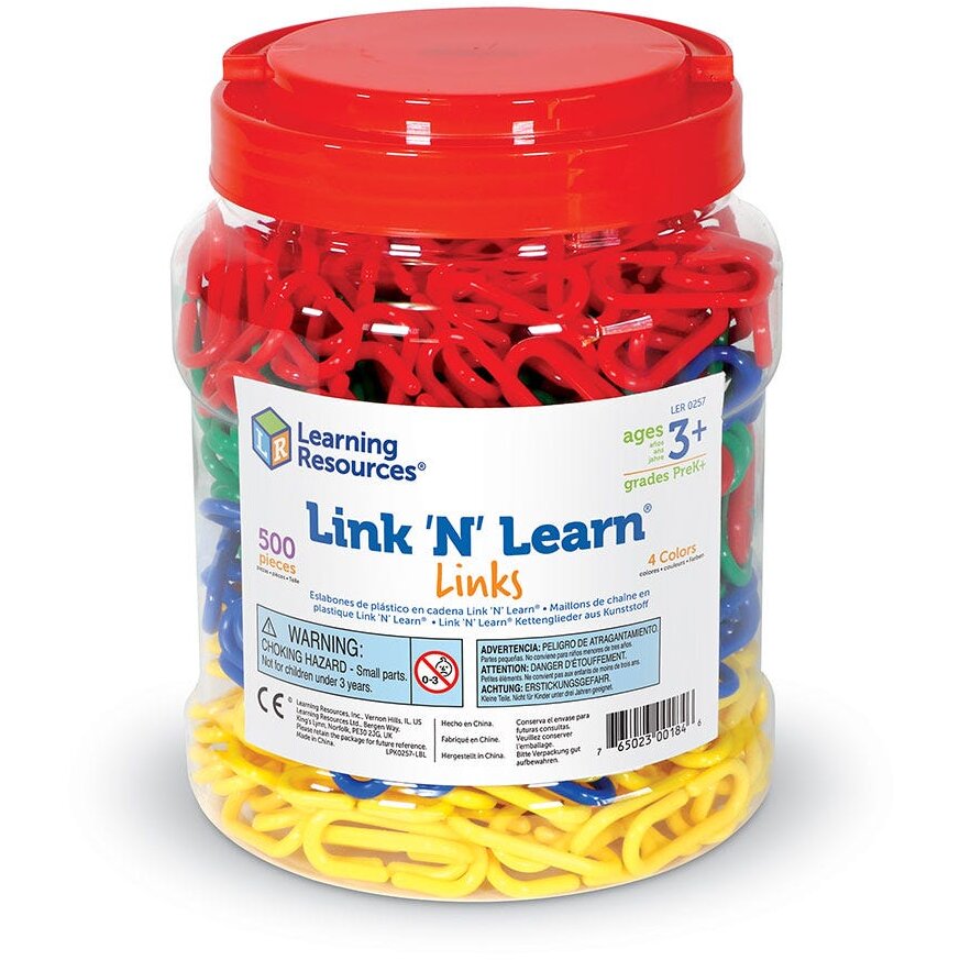 Verigile de 4 cm in 4 culori sunt perfecte pentru activitati de sortare, modelare, numarare si masurare, precum si activitati grafice. Setul include ghid de activitati. Separat sunt disponibile si carduri de activitati. Produsul este recomandat alaturi de LinkNLearn - Carduri de activitati.