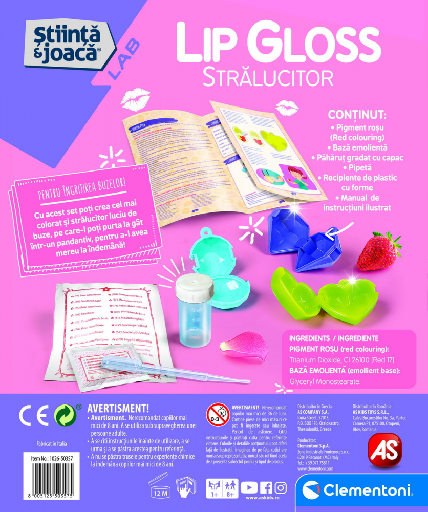 Cu acest set copilul poate crea cele mai stralucitoare balsamuri de buze si descoperi pas cu pas stiinta produselor cosmetice.