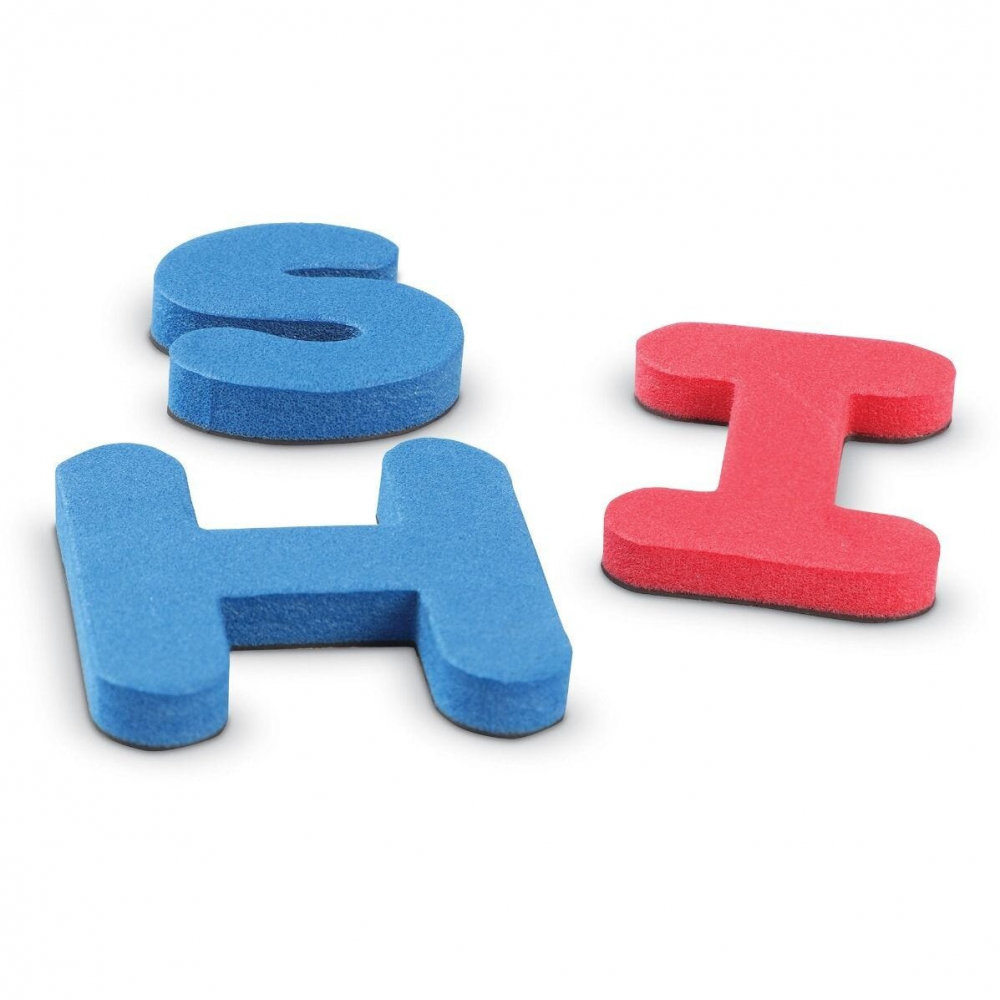 * Consoanele sunt colorate cu albastru, iar vocalele cu rosu. Setul include suficiente litere dintr-o spuma speciala pentru ca elevii sa construiasca numeroase cuvinte.