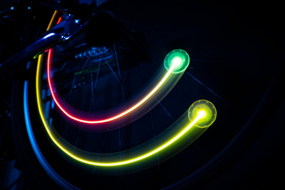 Personalizează-ți bicicleta cu OrbitBrightz – setul de două lumini LED pentru spițe care oferă o strălucire continuă timp de 24+ ore.