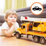 Constructie solida si detalii realiste: Rotile mari si designul detaliat fac vehiculul sa arate ca o macara adevarata, gata de orice misiune.