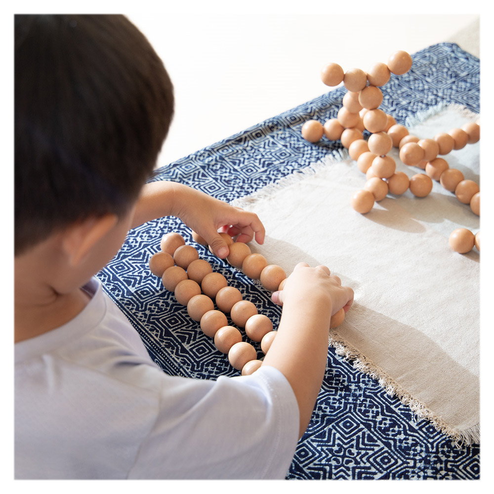 - Cu ajutorul acestor siruri flexibile de margele, copiii pot construi modele geometrice, liniare si tridimensionale, fie ca urmeaza modelele de pe carduri sau isi folosesc creativitatea si imaginatia proprie.