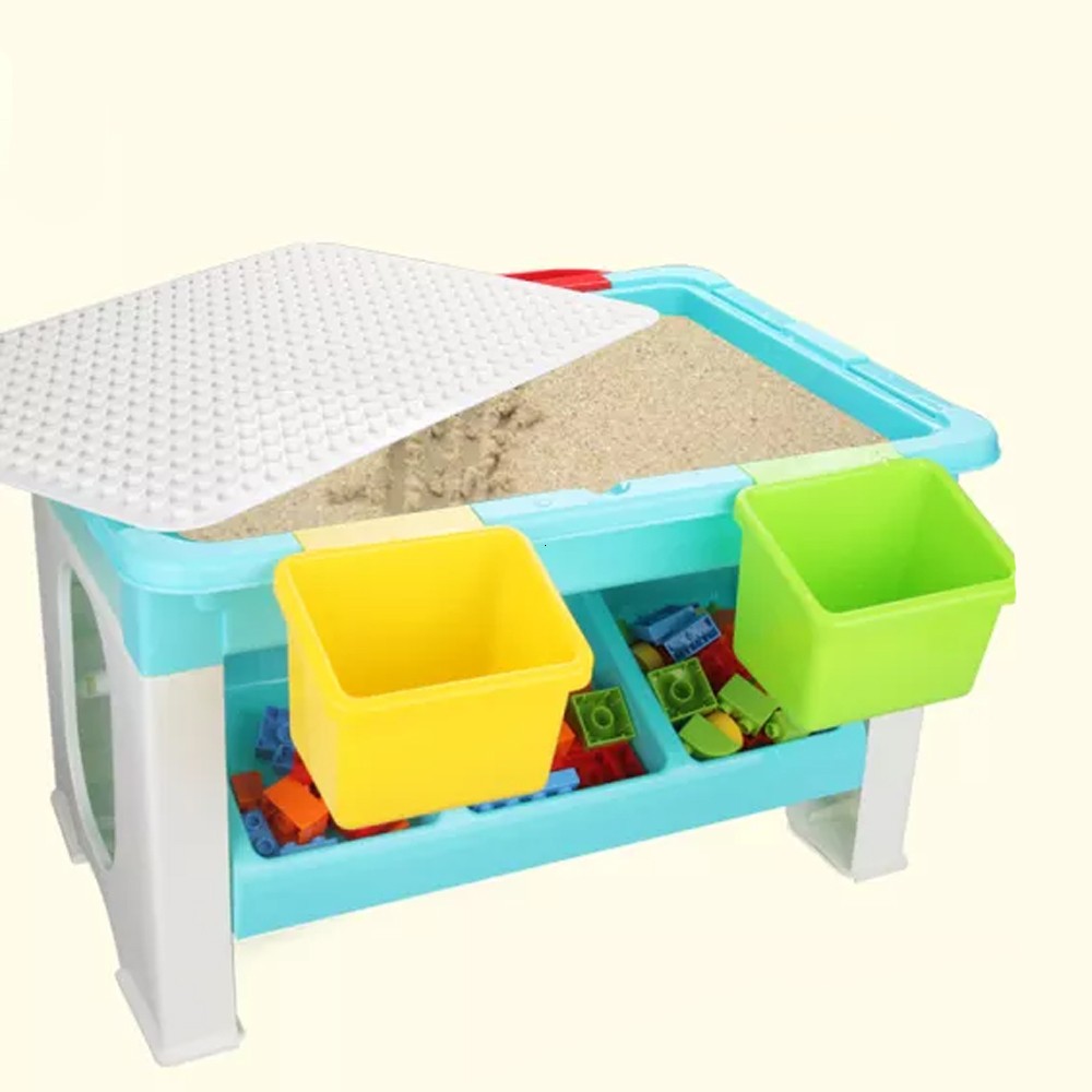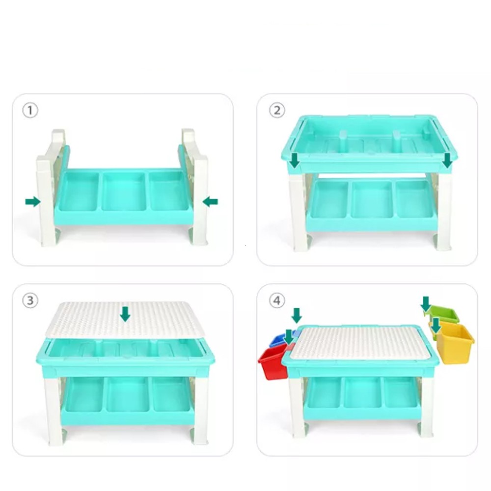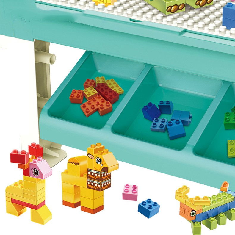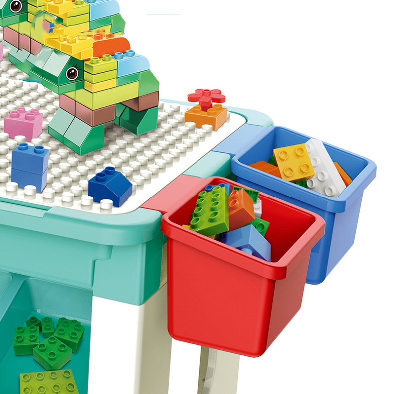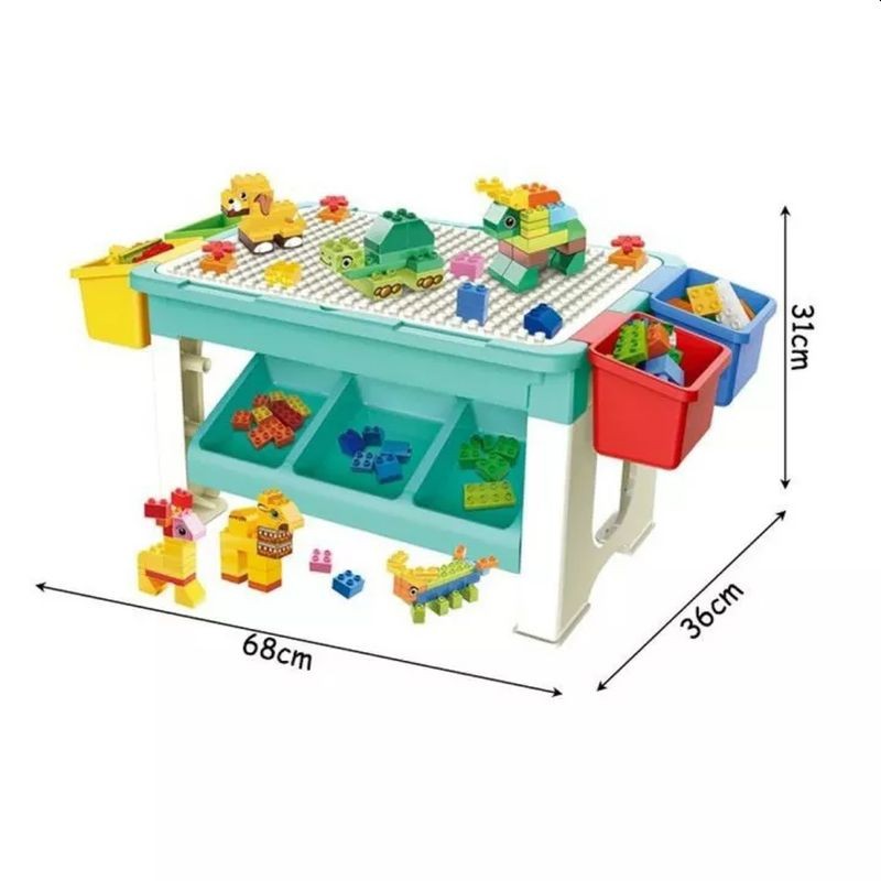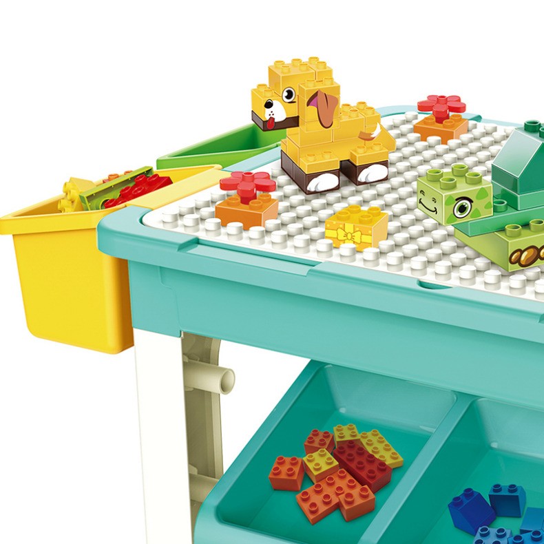 Masa cu blocuri de constructie, 69 piese, 4 cutii depozitare, joc educational