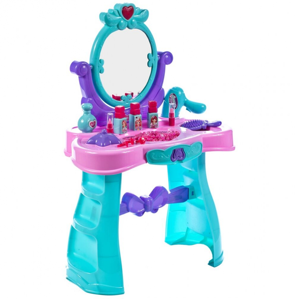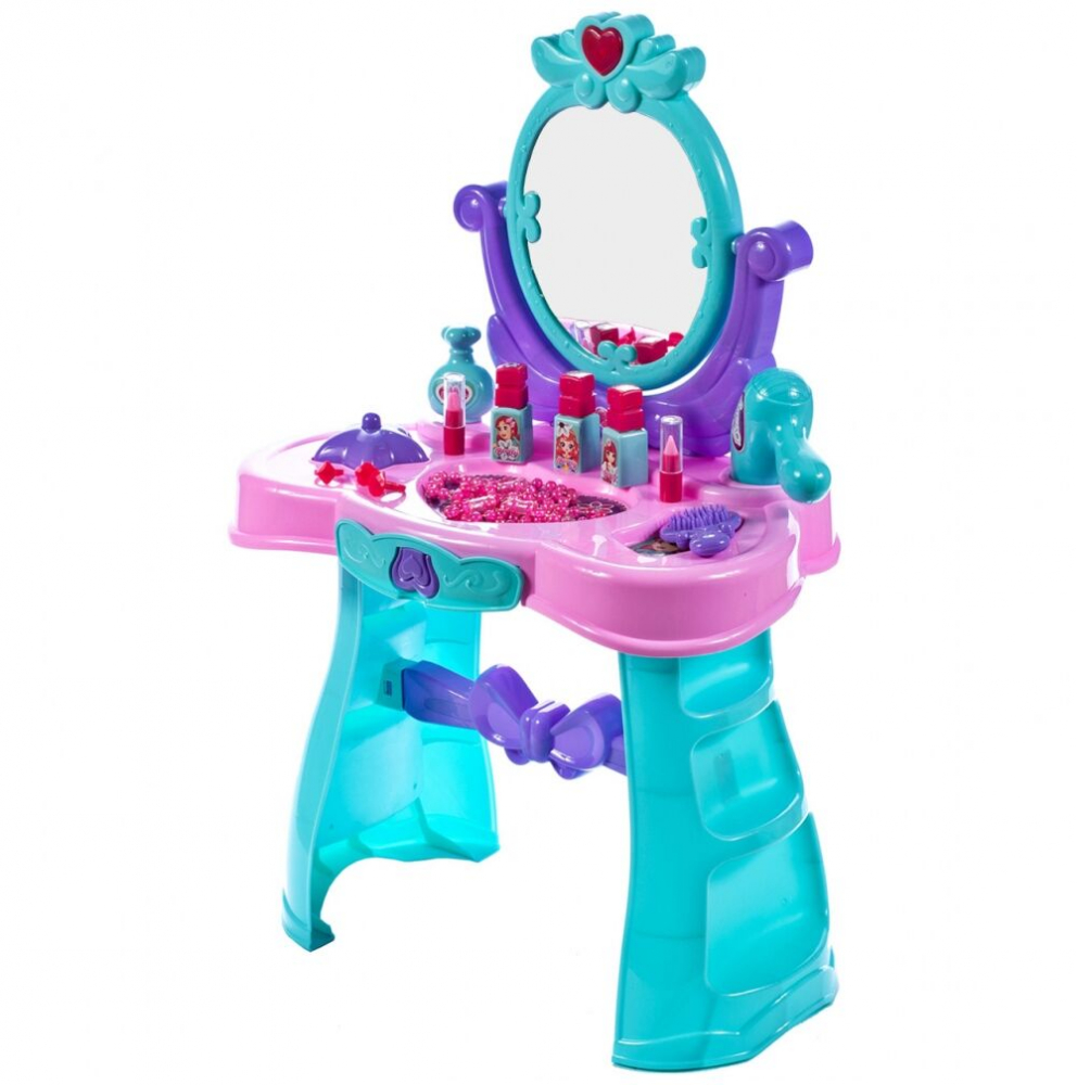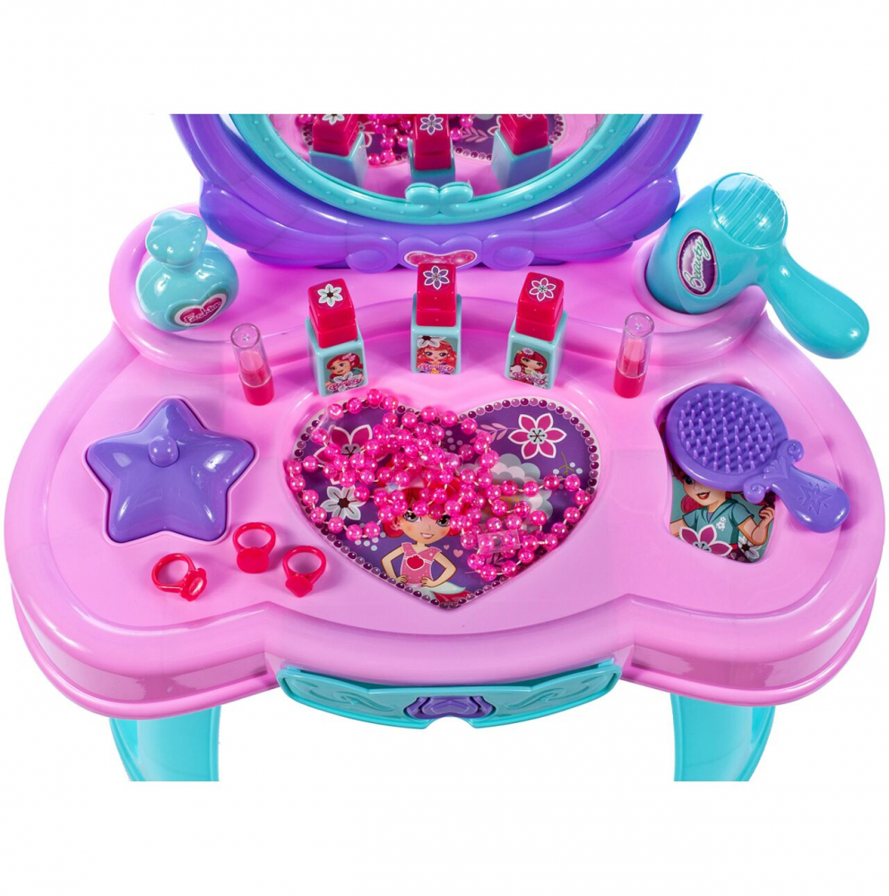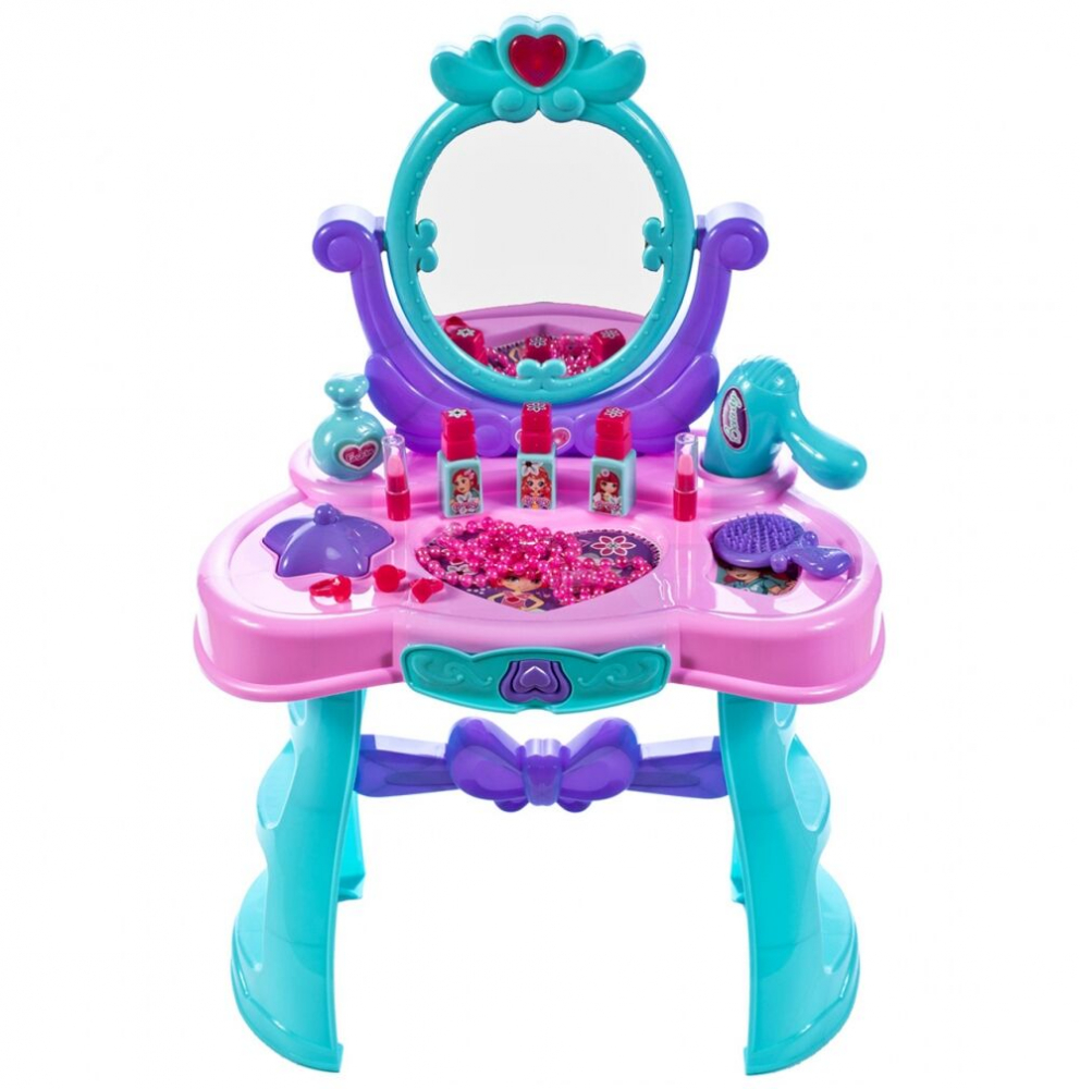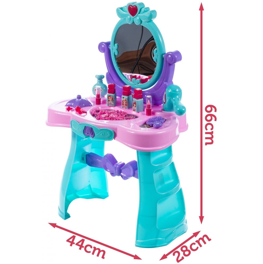 Masuta de toaleta pentru copii, contine o multime de accesorii care cu siguranta vor multumi si incanta fiecare domnisoara.
