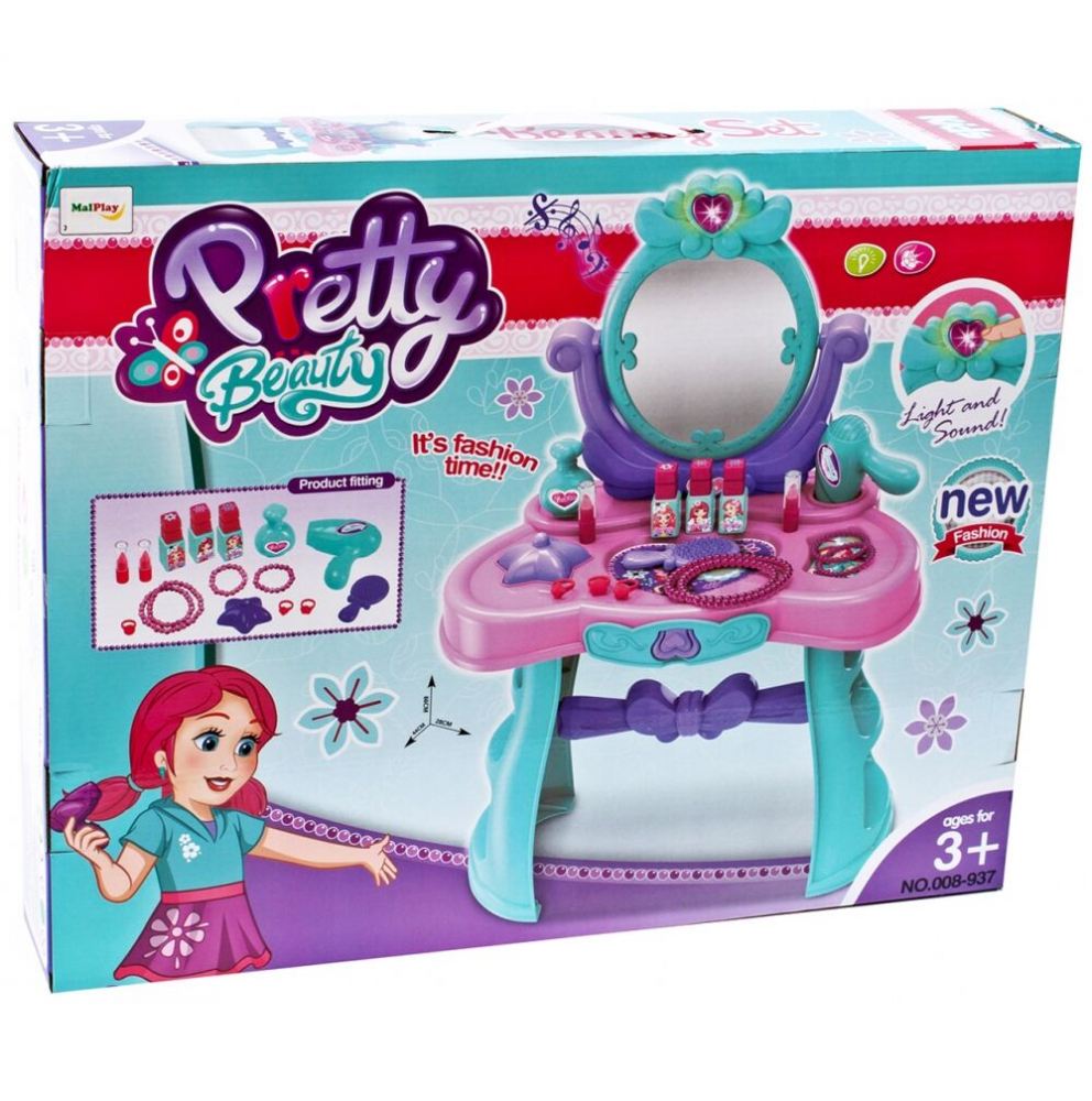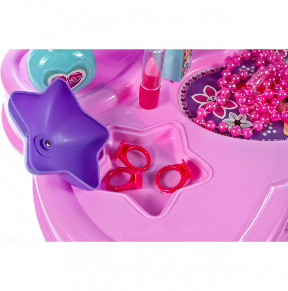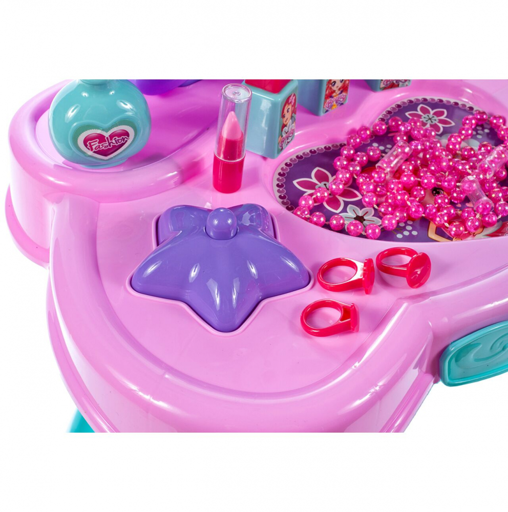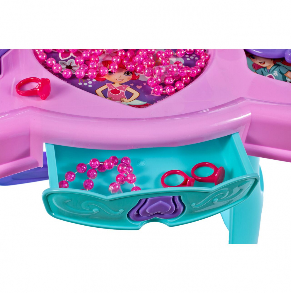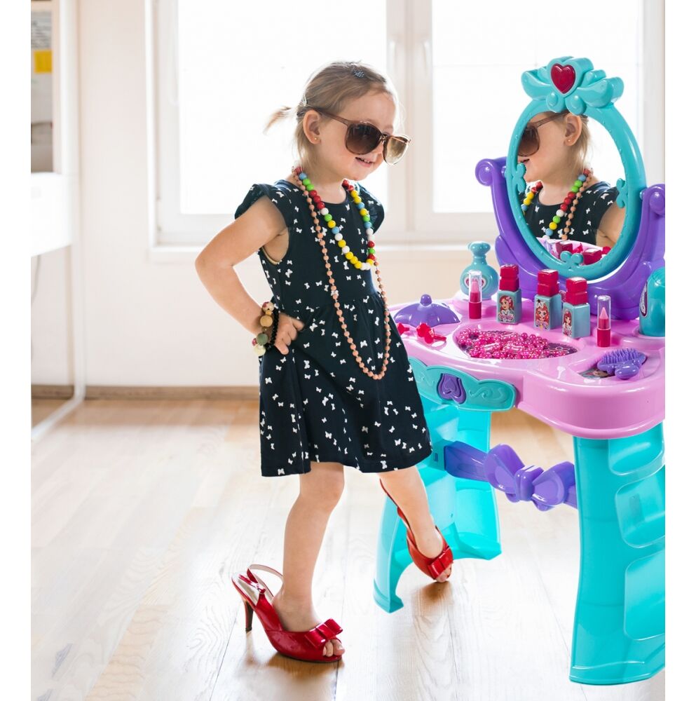Masuta de toaleta pentru copii, contine o multime de accesorii care cu siguranta vor multumi si incanta fiecare domnisoara.