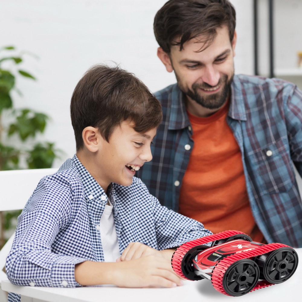 Radiocomanda are o raza de actiune de pana la 25 de metri, iar masinuta se poate deplasa cu pana la 12km/h.