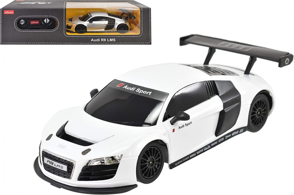 Copilul dumneavoastra se poate juca in voie cu masina cu telecomanda Audi R8, scara 1 la 24, oferita de brandul international Rastar.