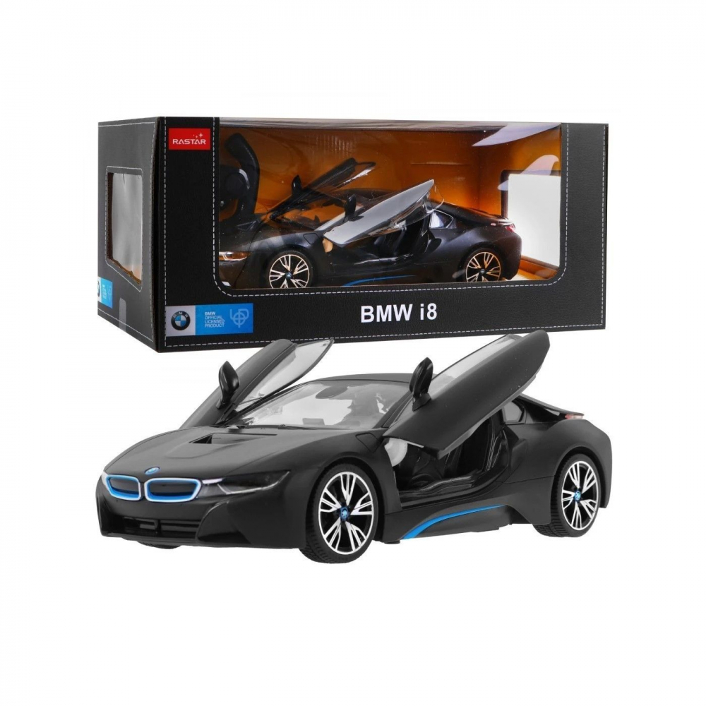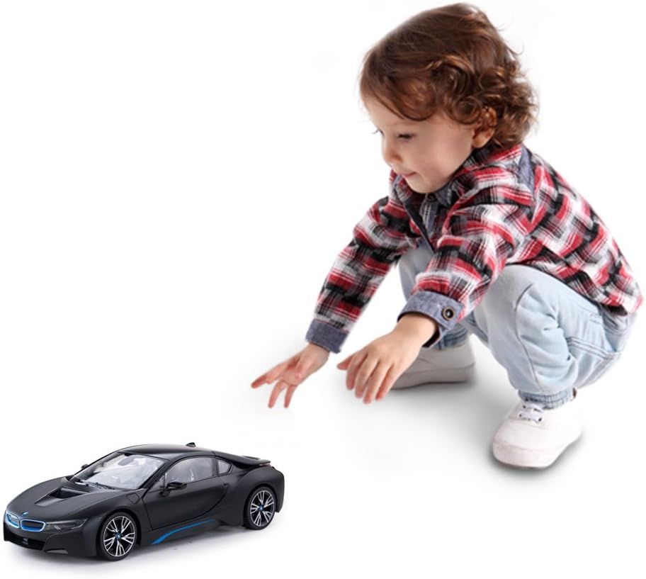 Copilul dumneavoastra se poate juca in voie cu masina cu telecomanda BMW I8, scara 1 la 14, oferita de brandul international Rastar.