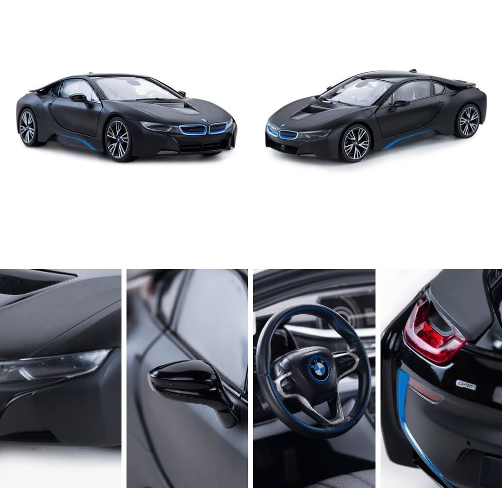 Masina cu telecomanda BMW I8, scara 1 la 14, poate rula cu o viteza aproximativa de 10km/h, are tractiune 2WD, anvelope de cauciuc, posibilitate de reglaj a directiei direct pe sasiu si o raza de actiune a telecomenzii de circa 20 de metri.