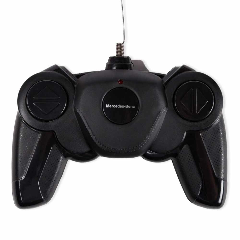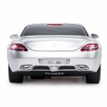 Masina cu telecomanda Mercedes Benz SLS AMG, scara 1 la 24, poate rula cu o viteza aproximativa de 10km/h, are tractiune 2WD, anvelope de cauciuc, posibilitate de reglaj a directiei direct pe sasiu si o raza de actiune a telecomenzii