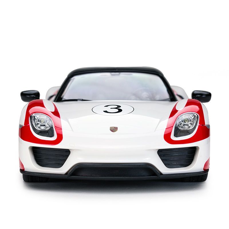 Copilul dumneavoastra se poate juca in voie cu masina cu telecomanda PORSCHE 918 SPYDER WEISSACH ALB, scara 1 la 14, oferita de brandul international Rastar.