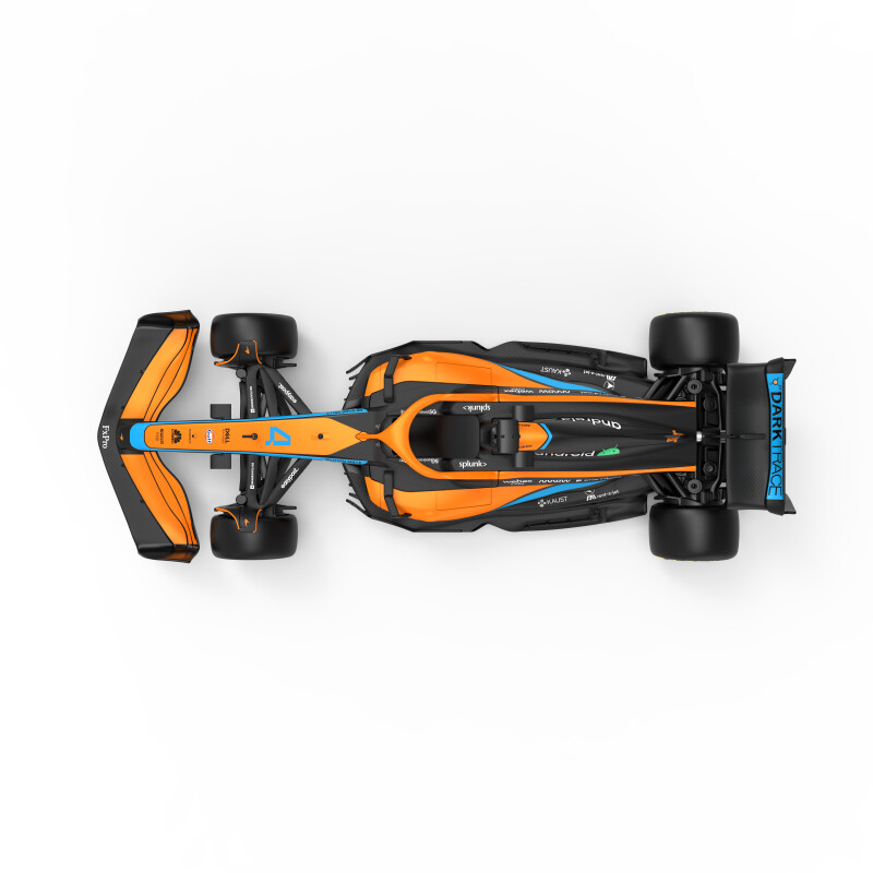 Masina cu telecomanda McLaren F1 MCL36, scara 1 la 18, poate rula cu o viteza aproximativa de 10km/h, are tractiune 2WD, anvelope de cauciuc, posibilitate de reglaj a directiei direct pe sasiu si o raza de actiune a telecomenzii de circa 20 de metri.
