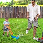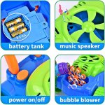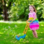 Masina de tuns iarba generatoare de baloane din sapun, cu baterii, 8 inele rotative si solutie inclusa Super Bubble