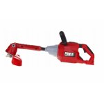Teava telescopica pe care este montata lama are un buton care permite reglarea lungimii sale.