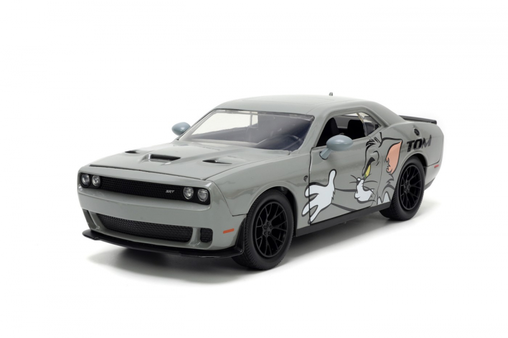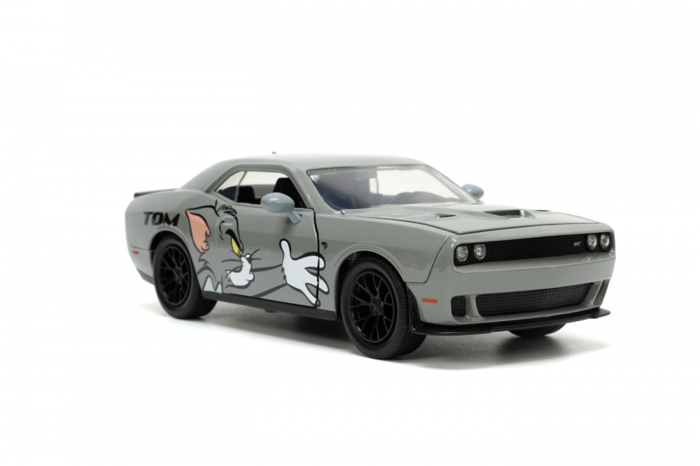 Masinuta din metal Dodge Challenger, cu usi, capota si portbagaj ce se pot deschide si figurina din metal Jerry, scara 124.