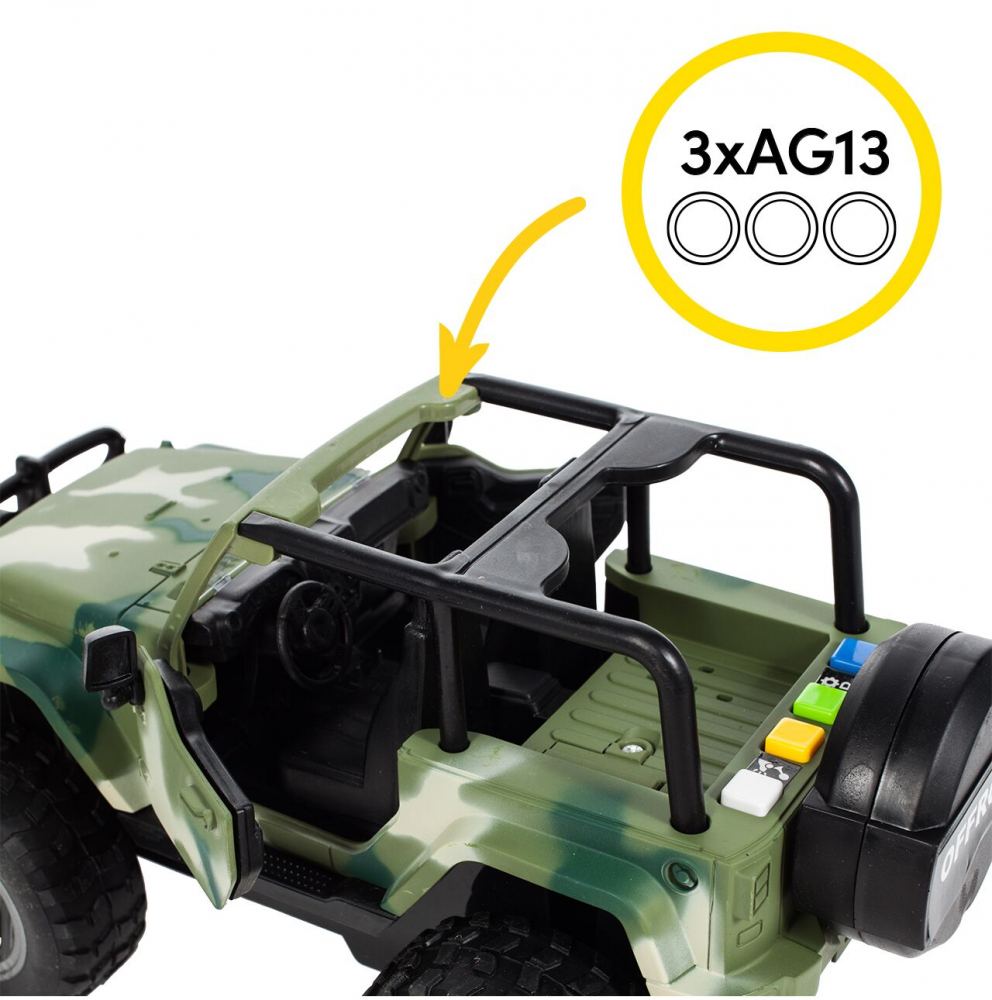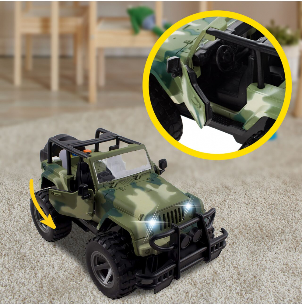 Masina off-road Jeep militar, cu Usi care se deschid, efecte sonore si luminoase, scara 1:16