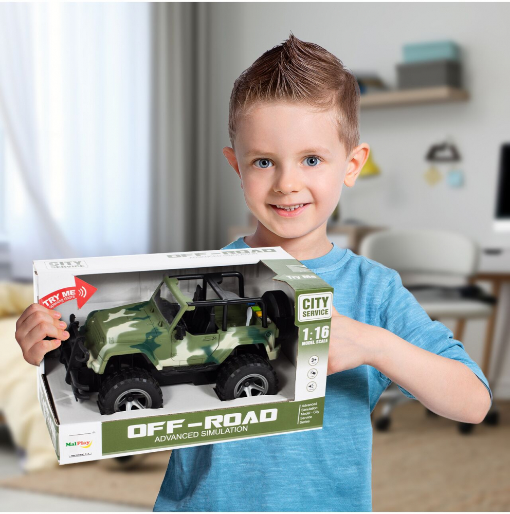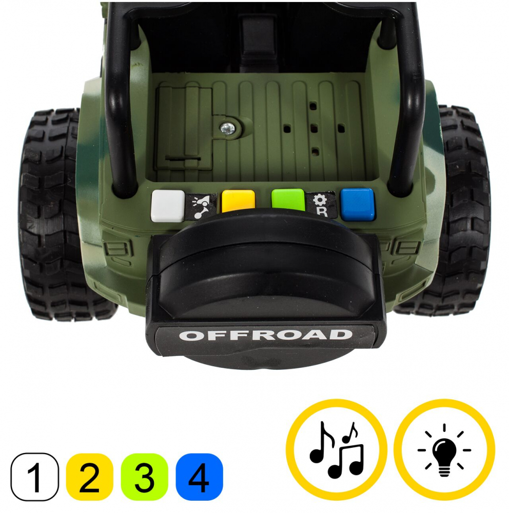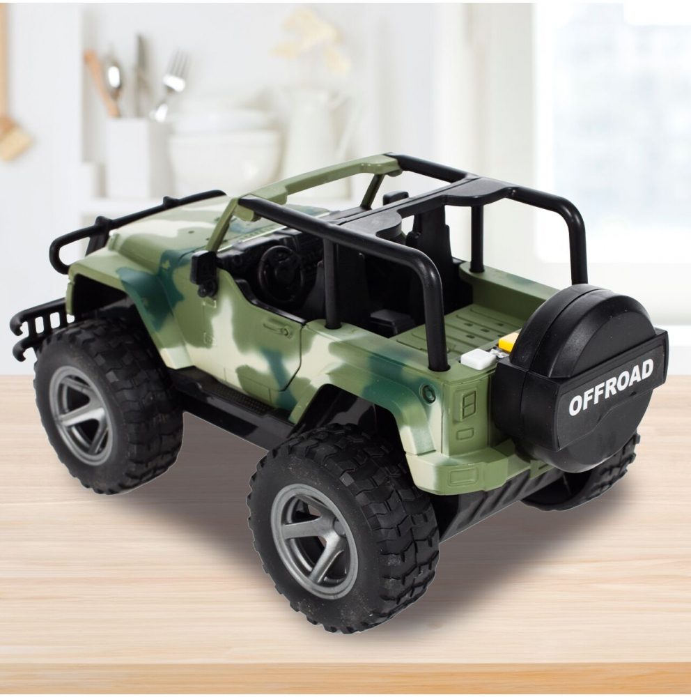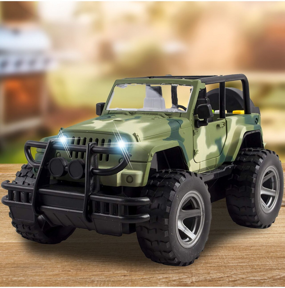 * Aceasta masina off-road Jeep militar este o jucarie ideala pentru copiii pasionati de vehicule militare si aventuri in aer liber.