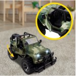 Design militar realist: Masina este o replica fidela a unui Jeep militar, cu detalii autentice care stimuleaza imaginatia.