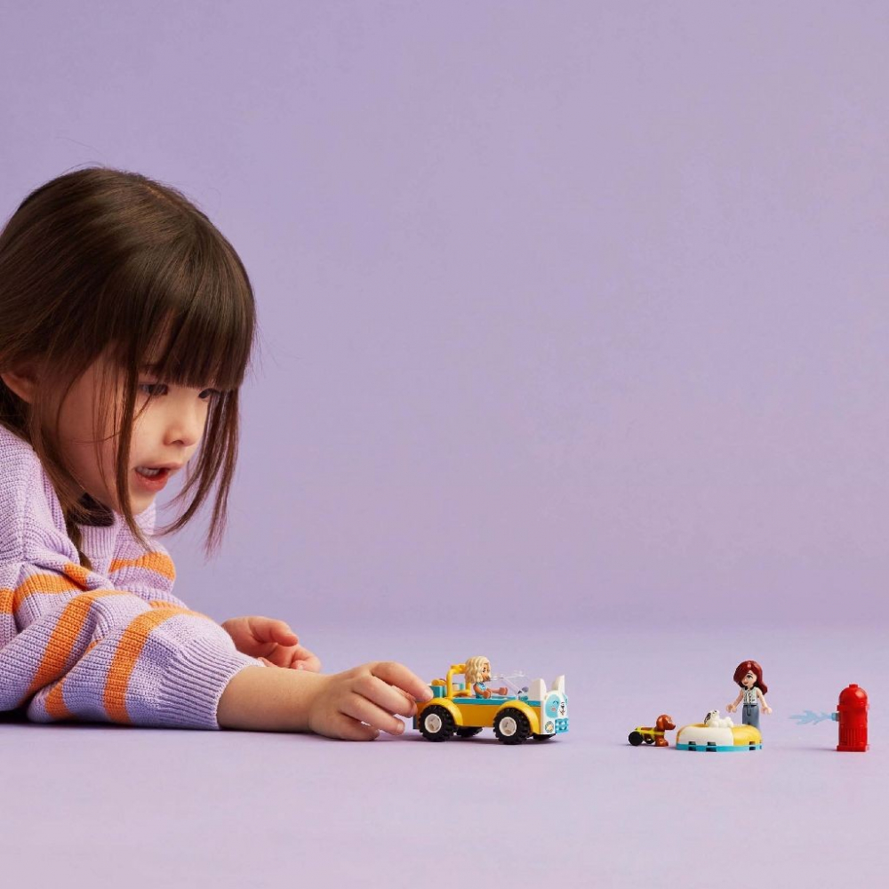 Setul cu vehicul LEGO Friends Masina pentru toaletarea cainilor (42635) este o idee grozava de cadou pentru copiii de 4+ ani care adora jucariile pe tema ingrijirii animalelor.