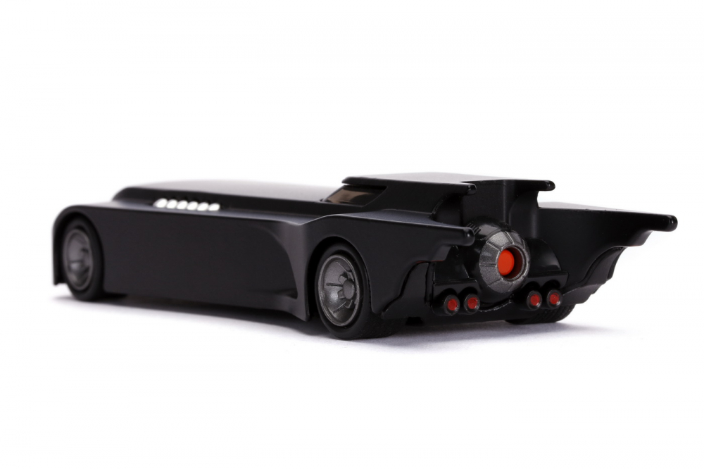 Replica exacta din seria animata.Intra in lumea Gotham cu ajutorul masinutei din metal Batmobile din seria animata Batman, cu usi ce se pot deschide.
