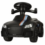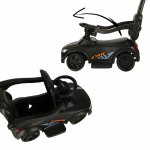 Masinuta copii de impins cu maner sunete si lumini Black, prevazuta cu suport pentru picioare, spatar mare confortabil, potrivita copiilor cu varsta mai mare de 1,6 ani cu greutatea pana la 23 kg