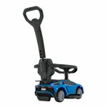 Masinuta copii de impins Lamborghini Aventador Blue, cu maner parental detasabil, sunete si lumini LED, roti din cauciuc, suport pentru picioare, bara de protectie, greutate maxima admisa 30 kg