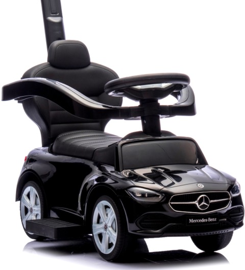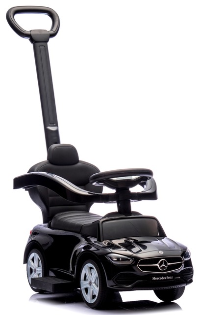 Masinuta copii de impins R-Sport Mercedes C63 amg negru cu maner pentru controlul parental, suport pentru picioare, protectie impotriva rasturnarii, volan cu melodii si claxon