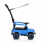 Masinuta copii fara pedale Moni Police Blue cu maner parental detasabil, suport pentru picioare, protectie care previne rasturnarea pe spate a copilului, volan cu melodii distractive, bara de protectie